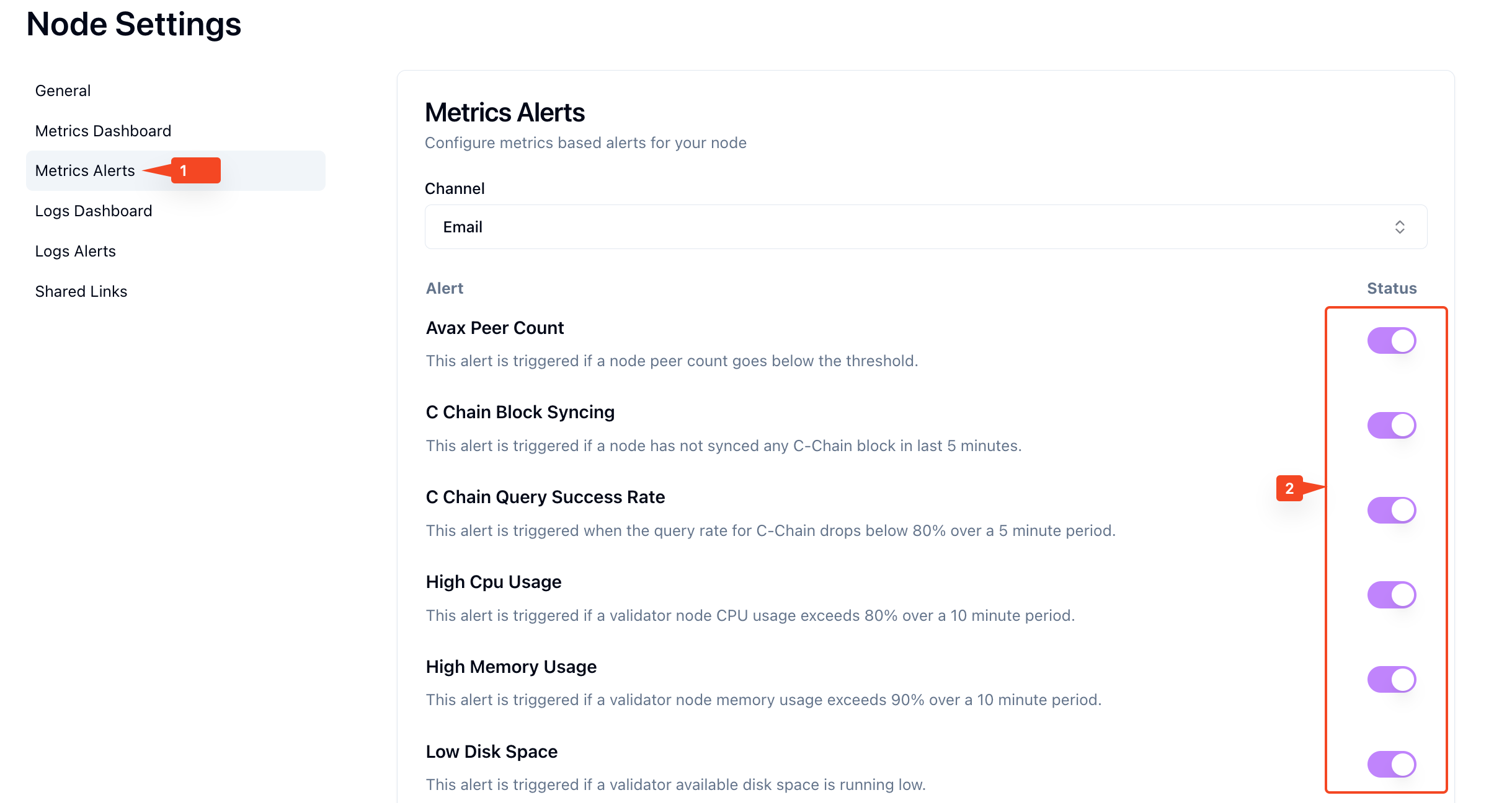 - Add alert channels if not configured already. See the Alert Channels section on how to manage alert channels. Once your channels are added successfully, you will see Channel in the status column.